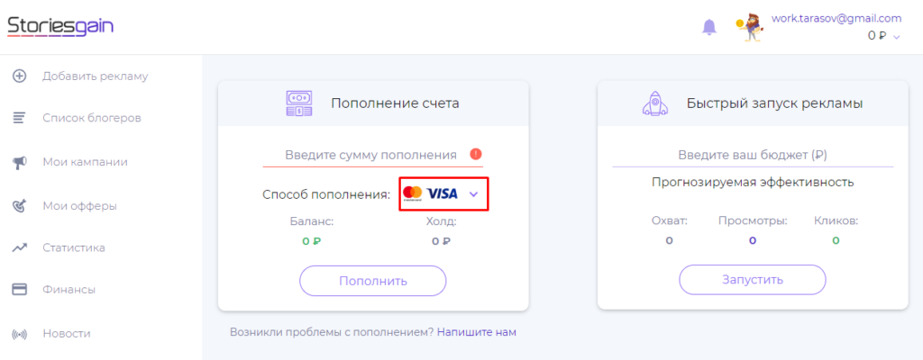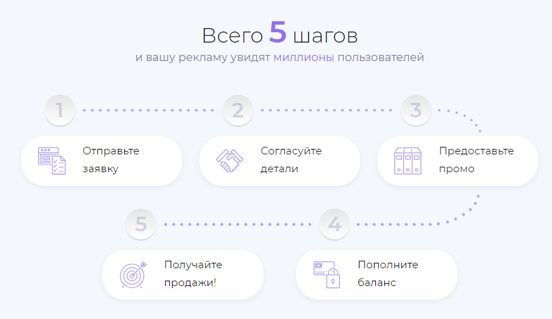 Для запуска рекламы на бирже Сторисгейн необходимо зарегистрироваться, как рекламодатель. Выше мы рассматривали, как это сделать. Всего для запуска рекламы нужно сделать пять шагов: