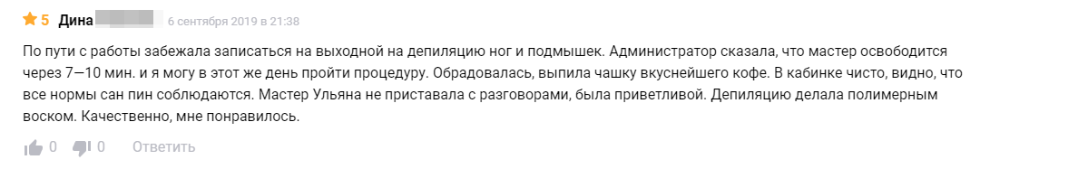 Самый популярный отзыв в сегменте B2C, в особенности в бьюти индустрии. Он не содержит никакой конкретики и при этом максимально наполнен эмоциями.