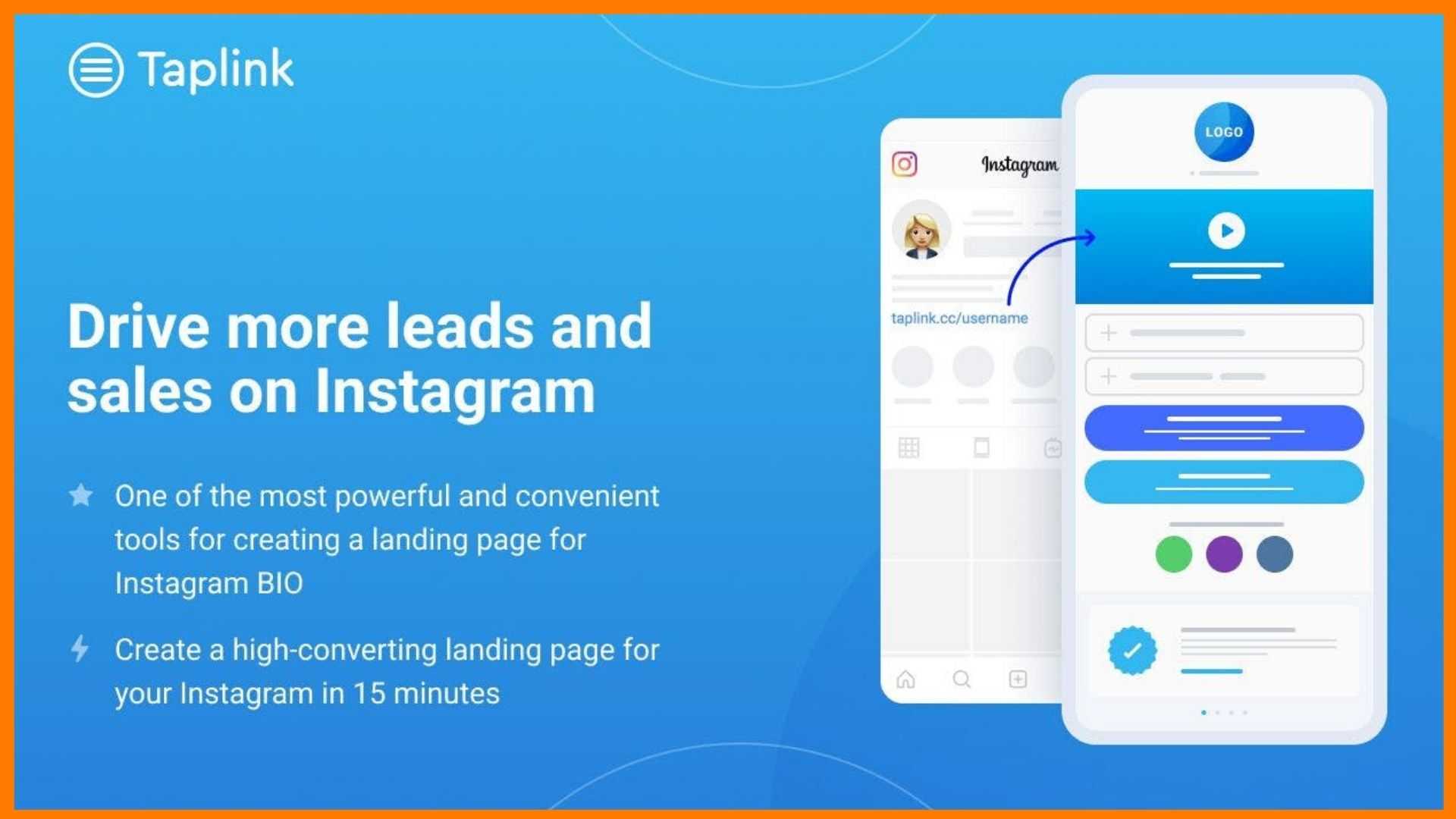 Taplink solves the problem of limited Instagram bio (150 characters and 1 link). It also helps you to save a lot of time and effort and create a high-converting landing page.
