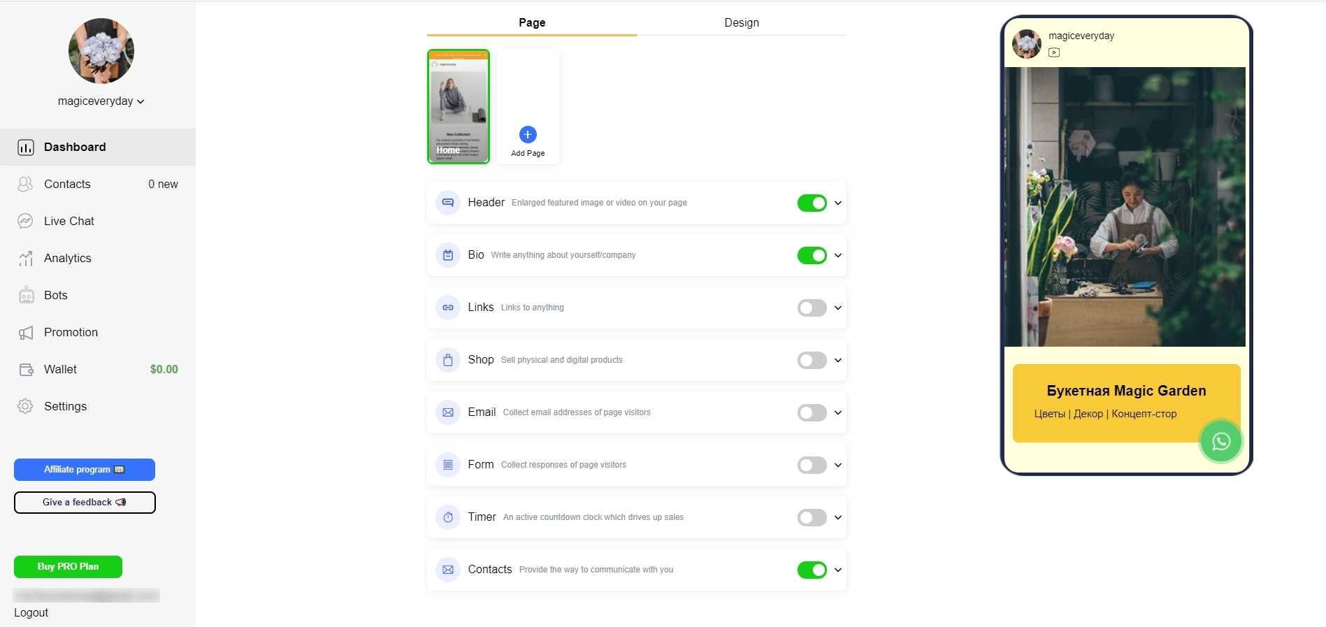 Подберите подходящий тариф и создайте мультиссылку из подходящих блоков. В 90% случаев блогерам и предпринимателям хватает базового тарифа. За него не нужно платить. В платном тарифе есть все необходимые опции для создания привлекательной и яркой посадочной странички. Основную информацию публикуйте в самом начале. Доступна аналитика? Регулярно отслеживайте статистику. При необходимости удаляйте или редактируйте нужные блоки.