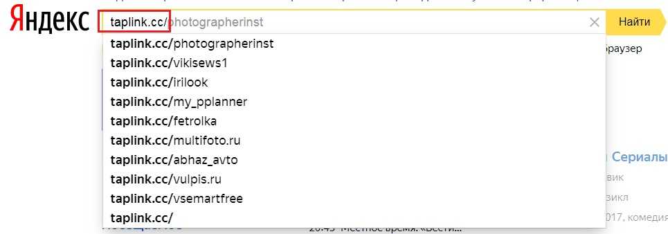 1. Заходим в любую поисковую систему, для примера я возьму Яндекс, и вводим в поисковой строке taplink.cc/