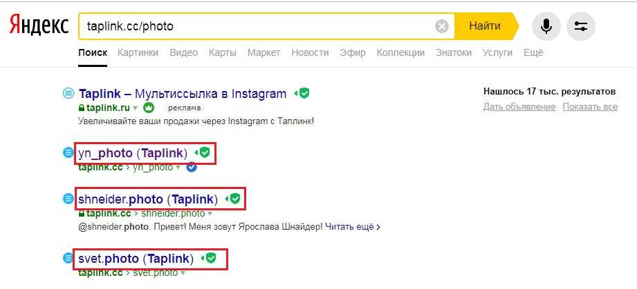 Используйте примеры оформления таплинка, актуальные в вашей нише. Поработайте с ключевыми словами. Для этого необходимо прописать в поисковой строке Яндекса taplink.cc/ и ключ на английском языке. Перед вами появится список с примерами мультиссылкок из указанной сферы