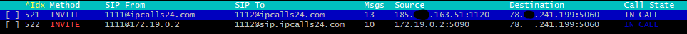 Также хочу обратить внимание на то, что вызов с FreeSWITCH пришел сразу на публичный IP адрес Kamailio. Это произошло из-за того, что в dialplan’е FreeSWITCH указано DNS имя sip.ipcalls24.com, а т.к у меня не настроены внутренние DNS сервера — поэтому sip.ipcalls24.com был орезовлен через внешние DNS сервера и именно поэтому вызов пришел сразу на публичный сетевой интерфейс Kamailio