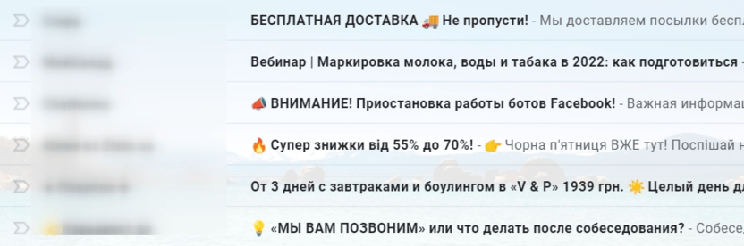 - короткие темы сообщений,