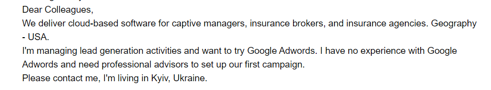 - Введение (Intro) — в этой части вам нужно будет рассказать о себе и почему ваше письмо нужно дочитать до конца.