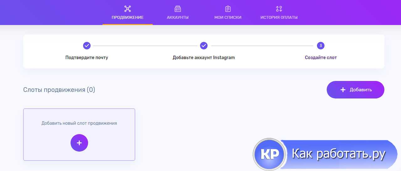 И нажимайте на + “Добавить новый слот продвижения”, вы попадете на страницу оплаты слота. Слот – в данном случае мы можем считать кабинетом добавленного инстаграм* аккаунта. Количество слотов и разумеется аккаунтов не ограничено. Но каждый слот (аккаунт) оплачивается отдельно согласно тарифному плану, который вы можете увидеть ниже.
