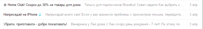 Если тема первого письма сразу сообщает суть, то тема третьего – не несет практически никакой информации. Первое и второе письмо откроют с большей вероятностью.