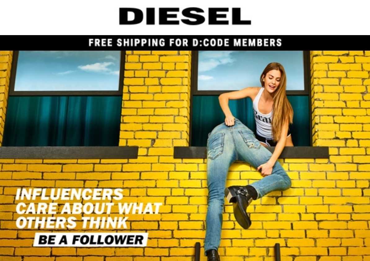 Градиенты в шапке письма от Trello (слева), вижуал из кампании Diesel в рассылке бренда (справа)