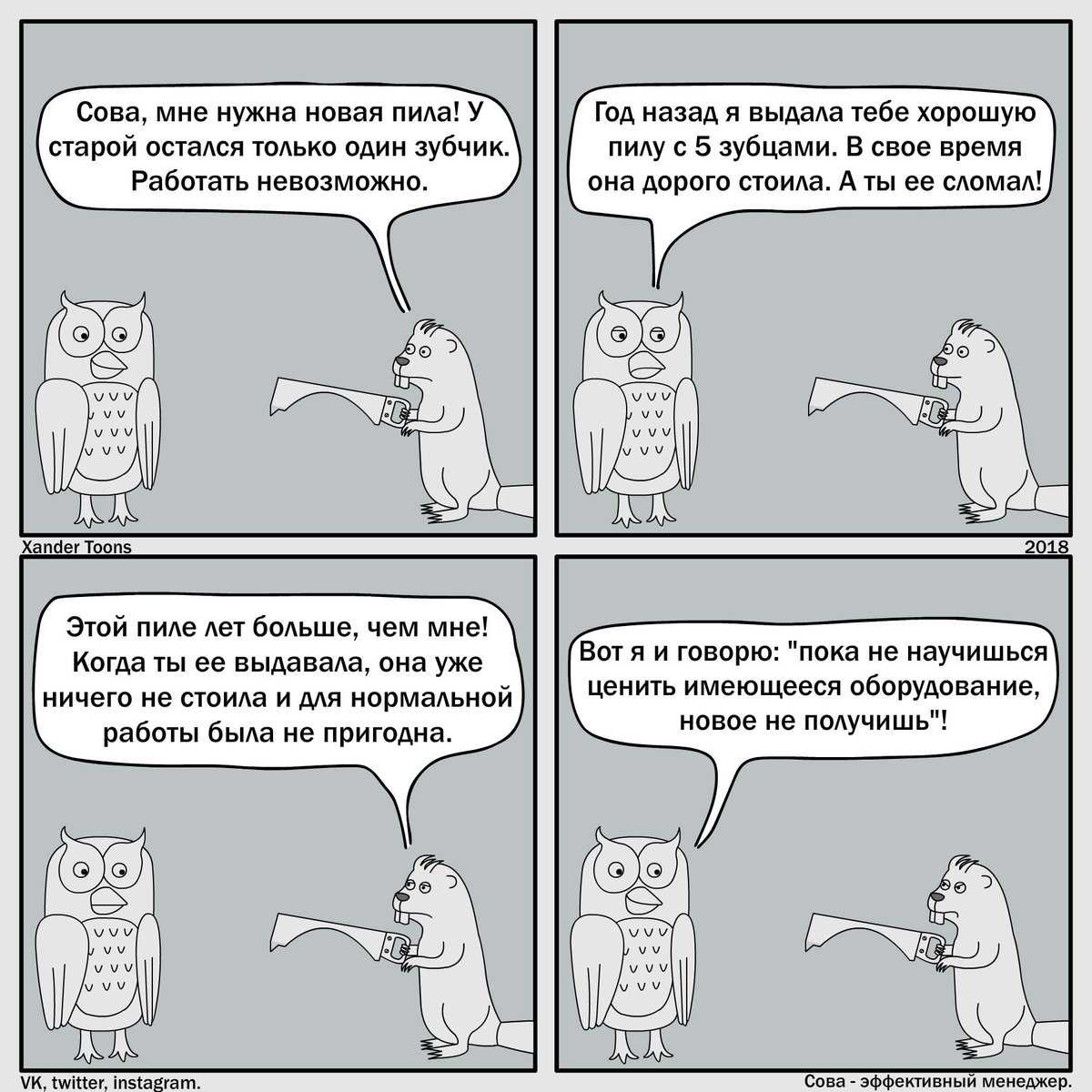 Девиз: “Спросите у меня. Когда мне будет удобно. Когда-нибудь”Это совершенно анекдотическая история, в которой начальница допустила едва ли не все приведенные выше ошибки. Богатый чувак купил бизнес своей женщине — она с радостью начала рулить. Ну как рулить — Ольга могла не появляться в своем салоне красоты неделями, спихнув все на заместителей, а сама вела привычный образ жизни: кафе, магазины, фитнес, бассейн. И все бы ничего — это еще не худший вариант, знаю примеры подобных бизнесов, где все работает как часы благодаря работе старшего персонала. Но Ольга давала сотрудникам взаимоисключающие задачи: велела без нее ничего не решать и в то же время совершенно не давала обратной связи. Даже такая ерунда, как вопрос — давать или не давать постоянной клиентке большую скидку — подвисал в воздухе на несколько дней, потому что Ольгу трудно было отловить даже по телефону. В итоге клиенты стали постепенно переходить к конкурентам: там их проблемы решались мгновенно. Салон продали другому хозяину, а Ольга, кажется, даже не заметила.Что говорят сотрудники: “Ее невозможно поймать и добиться хоть чего-то. Наверное, сама ни в чем не разбирается”.Что делать: или нормально руководить, или продолжать привычное времяпрепровождение по кафе и магазинам. Ну или хотя бы делегировать полномочия заместителям, чтобы те не гонялись за начальником, а сами решали текущие рабочие моменты.
