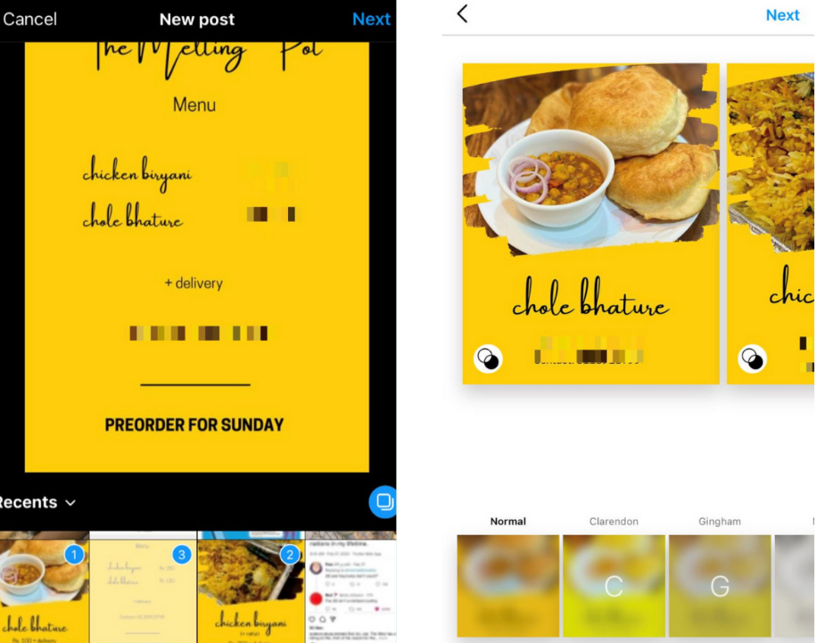 Step 5. Just like creating a single-image post, you’ll get the option to edit your photos and videos by applying filters. To create a cohesive look throughout, you can choose to apply the same filter throughout all the images and videos. Once you’re done, tap on the “Next” button.