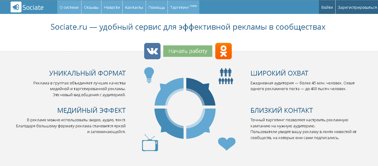 Сервис Sociate работает исключительно с VK, Instagram и Одноклассниками, предоставляя более 85 тыс. разнообразных площадок.