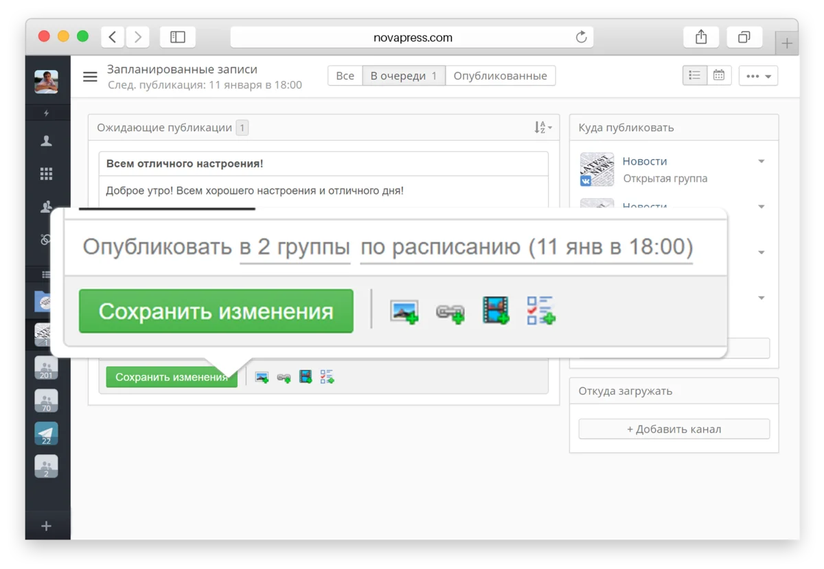Постинг в несколько соцсетей или групп одновременно и адаптация контента под каждую из площадок