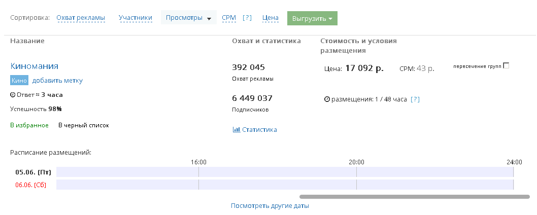 Кроме того, здесь предусмотрен ряд опций, которые делают размещение промо-постов еще более целенаправленным. К ним относится исключение из поиска администраторов, затягивающих рассмотрение заявок; блокируется показ площадок из черного списка, с определенным возрастным цензом или созданные в последнее время.