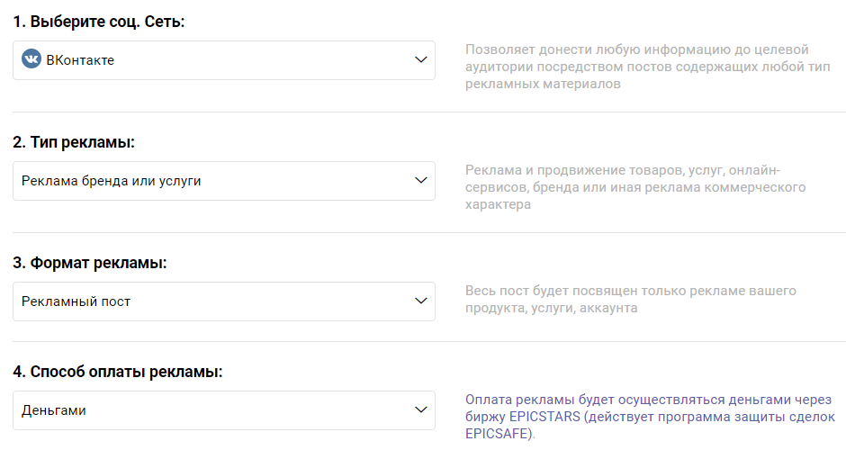 Отличительная черта этой биржи заключается в полной автоматизации проведения рекламных компаний в соцсетях.