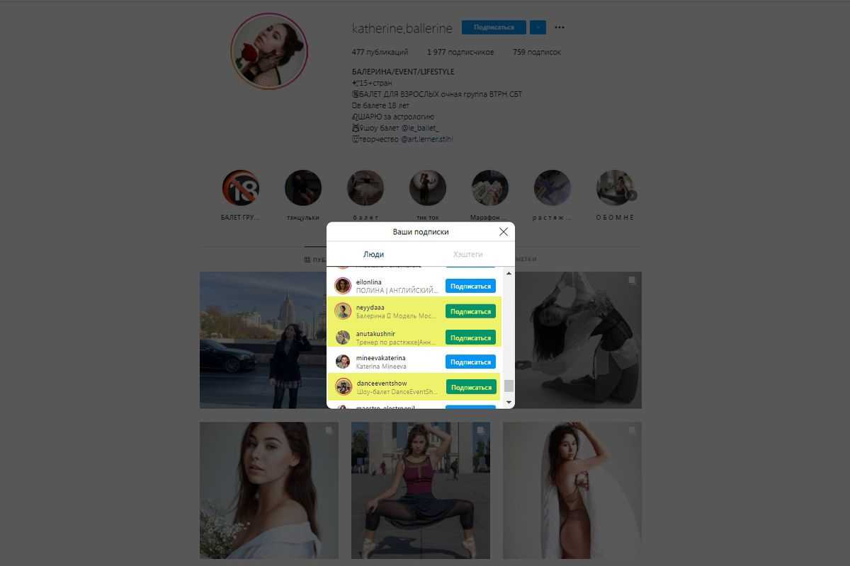 Из минусов: приходится перебирать все вручную, и, конечно, подход не работает, если у человека накрученные массфоловингом подписки. Кроме того, в верх списка выходят не только интересные человеку блогеры, но также мама, муж, сестра и однокурсницы, чьи страницы приходится пролистывать в процессе перебора.
