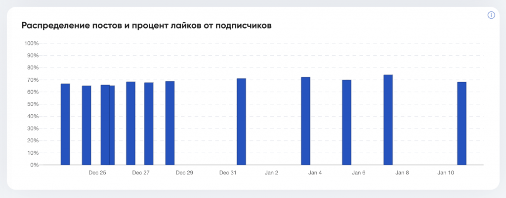 Например, у поста 1000 лайков, но только 675 лайков от подписчиков. Тогда этот процент будет 67,5%.