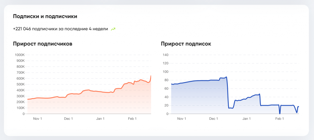 По этому графику можно отслеживать, развивает ли блогер свой аккаунт. Например: