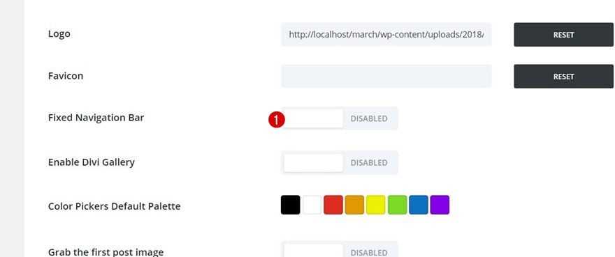 The first thing you can do, depending on your preference, is disabling the Fixed Navigation Bar option to keep the primary menu at the top of your page at all times. To do that, go to your WordPress Dashboard > Divi > Theme Options > General > Disable Fixed Navigation Bar.