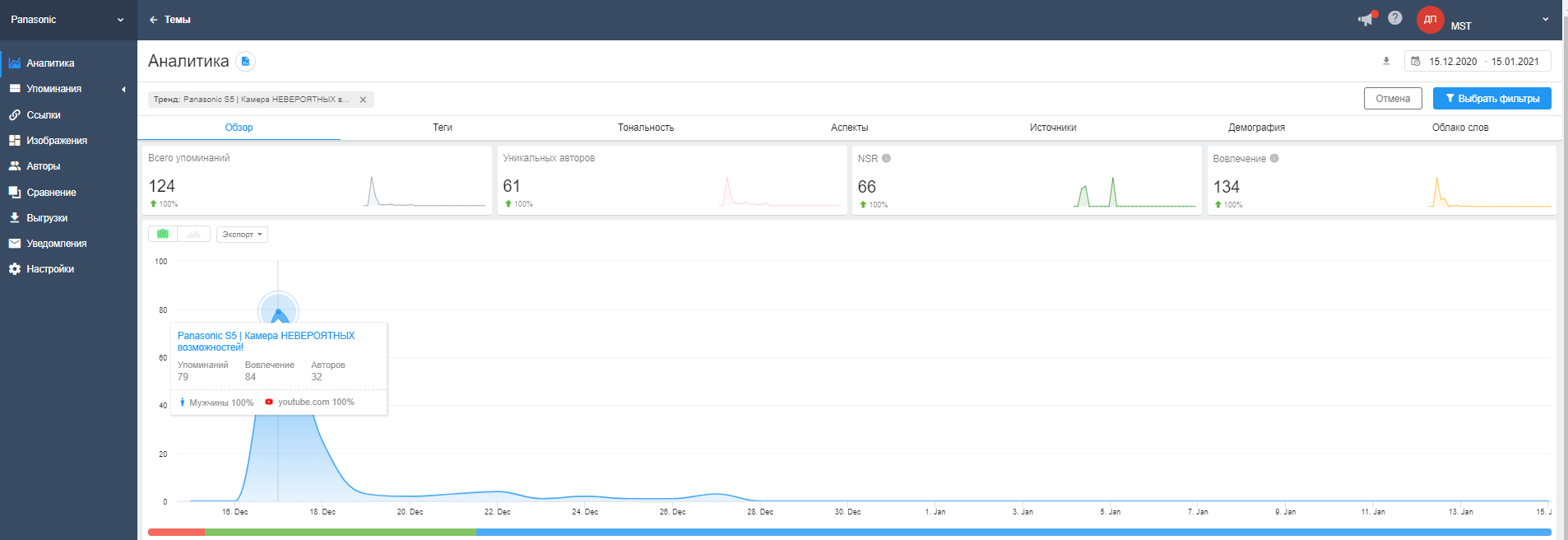 Помогает искать и анализировать инфлюенсеров, их деятельность, анализировать упоминания бренда и дни, когда аудитория была наиболее вовлечена в рекламную кампанию.
