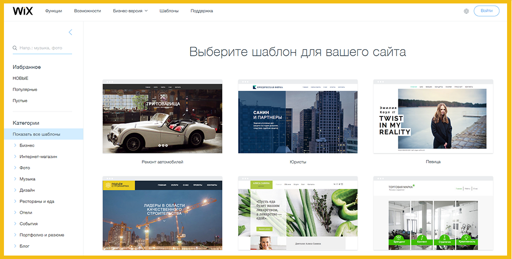 Не бойтесь сделать неправильный выбор, так как в любой момент выбранный шаблон можно будет сменить в редакторе.