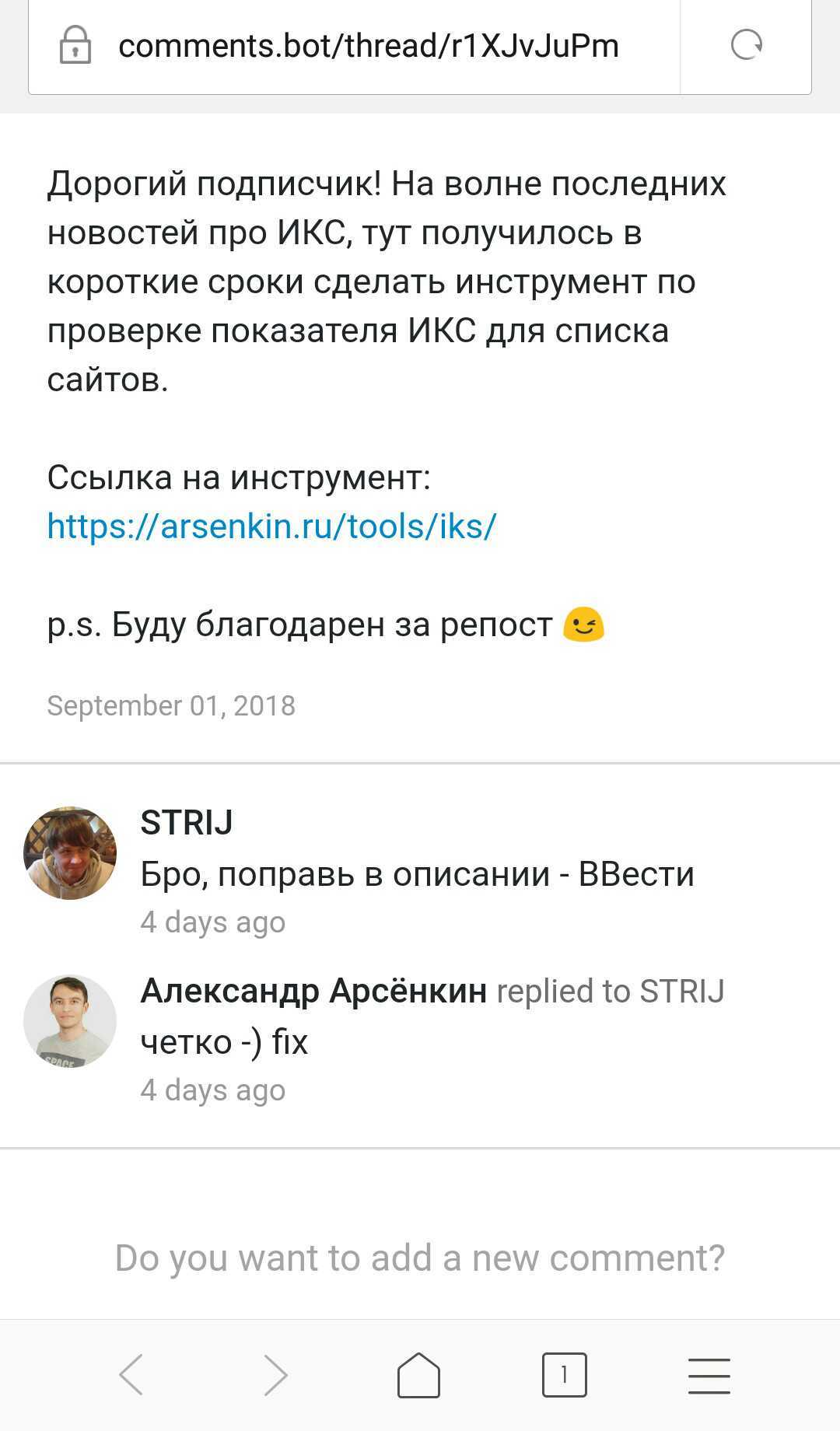 Комментарии откроются в отдельном окне. В нашем тестовом канале нет комментариев, но вот как это выглядит у других:
