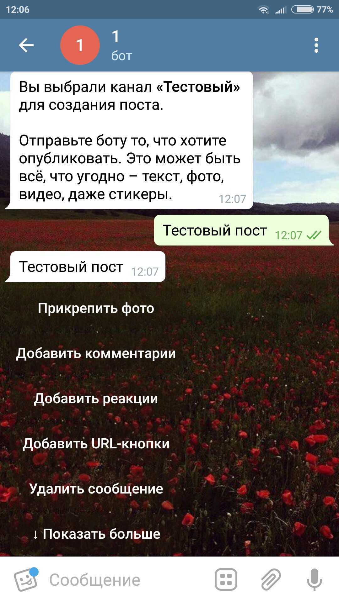 Он поддерживает Markdown-разметку, то есть можно форматировать текст: выделять важное, ставить ссылки. Для этого нужно зарегистрировать через Controller отдельного бота для себя, добавить его в админы канала и через него создавать посты с дополнениями. Для теста мы создали бота 1.
