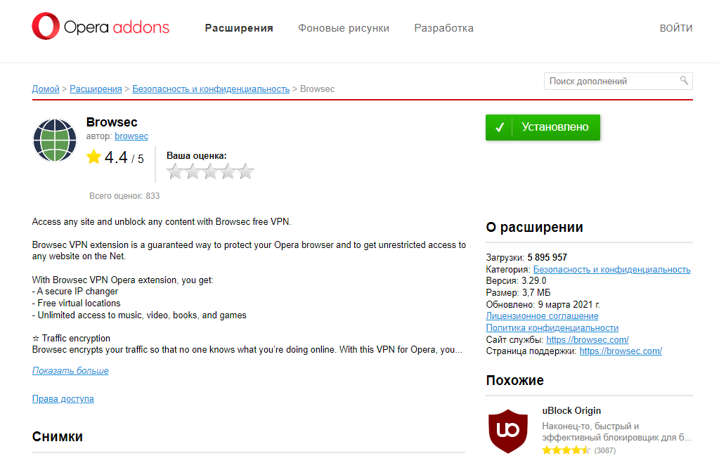 Как зайти в Инстаграм через этот ВПН? Просто. Скачать и установить расширение в браузере, например, в Опере. Нажать на кнопку ON. Дождаться соединения и зайти в Instagram.