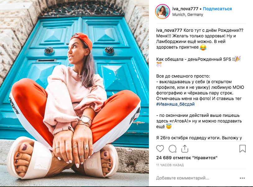 Марафоны. Люди регистрируются в Инстаграм не только для того, чтобы позалипать на смешные мемы, но и для того, чтобы стать лучше. Вот тут-то на помощь и приходят инста-марафоны. Марафон — это тренинг, длиною от 3 до 30 дней, который позволяет научиться чему-то новому или изменить свою жизнь. Участники марафона должны делать репосты записей, делиться своими результатами, а самым активным в конце достаются подарки.