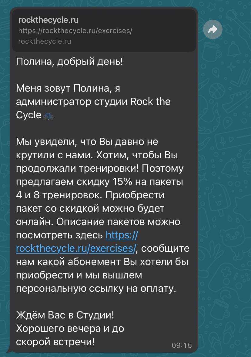 Такие сценарии больше всего подходят фитнес-центрам, салонам красоты, химчисткам и другим компаниям, предоставляющим регулярные, а не единоразовые услуги. В рассылке можно напомнить о себе, предложить скидку, рассказать о нововведениях и пригласить прийти снова.
