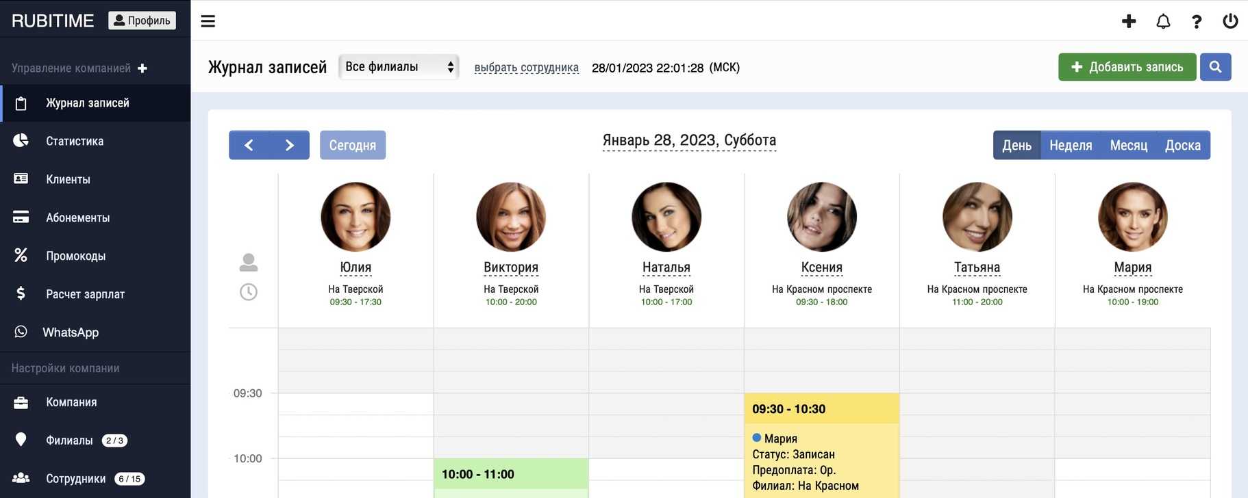 - Максимально наглядный и интуитивный журнал записи клиентов.