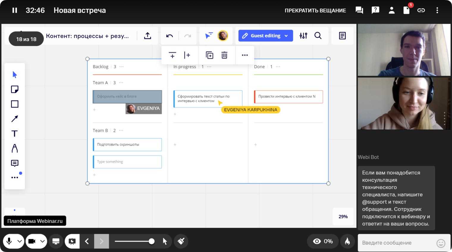 Российский сервис для онлайн-встреч. Позволяет работать из браузера или мобильного приложения, загрузить контент для демонстрации на конференции и настроить задний фон. Предлагает бесплатную и платную версии, находится в реестре отечественного ПО и имеет серверы в России.