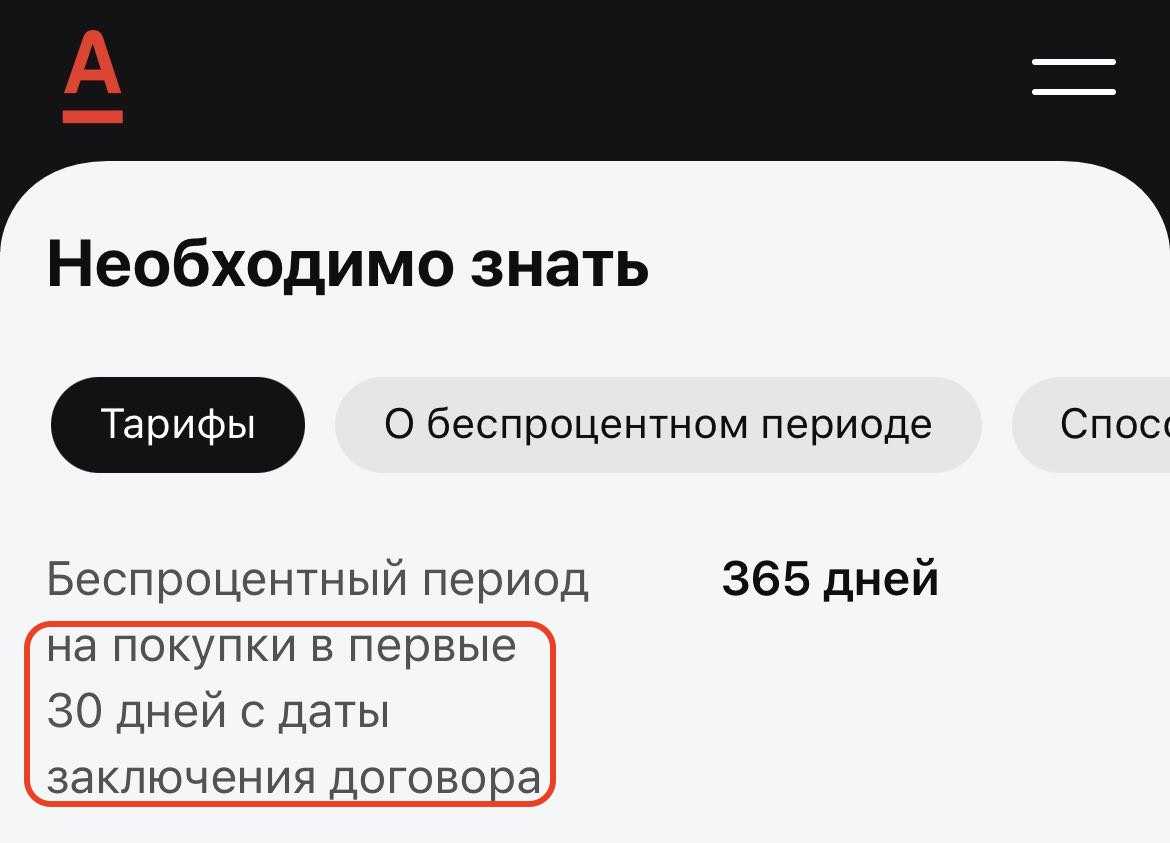 Условия по кредитной карте Альфа Банка «100 дней без процентов»