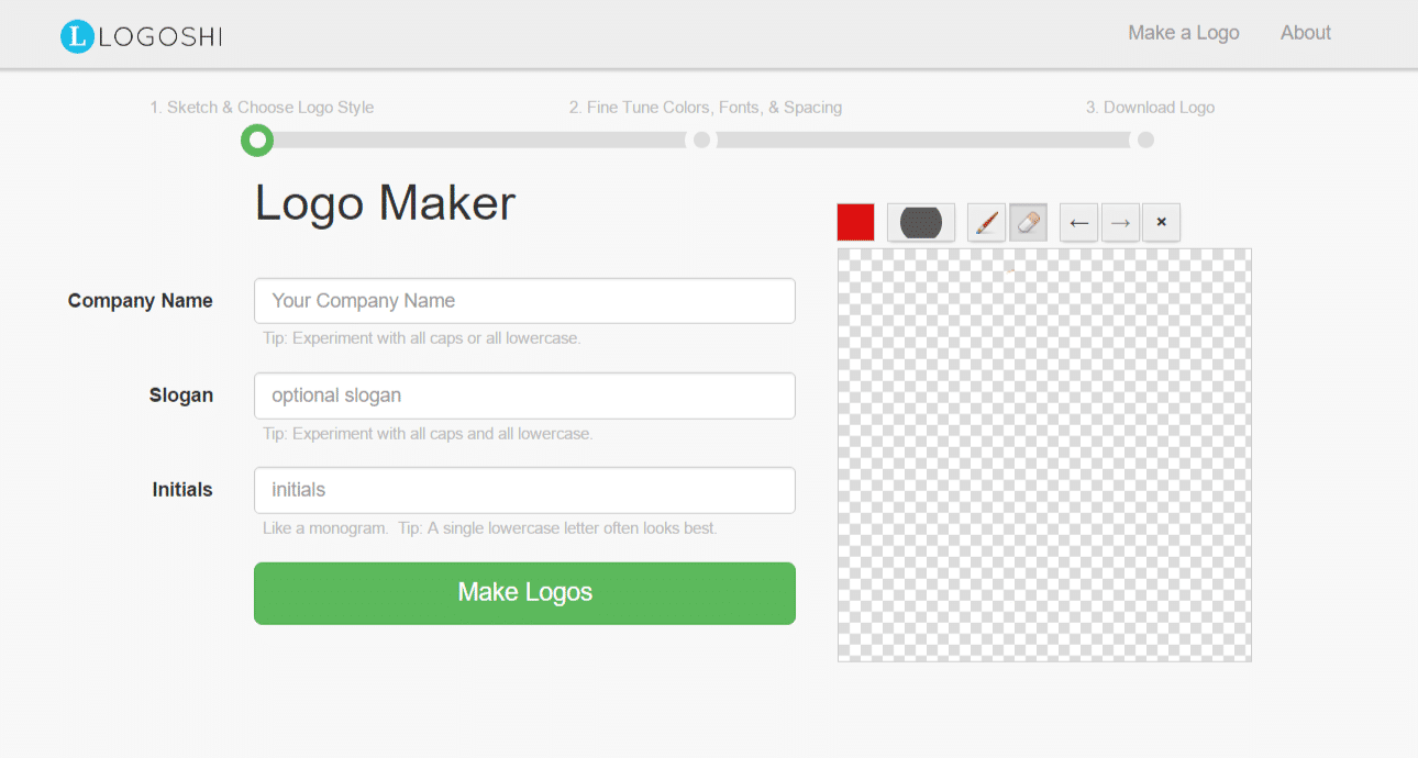 Logoshi — довольно необычный сервис для создания логотипов. Вполне понравиться творческим личностям и не только. Для того, чтобы создать свой уникальный логотип, вы должны нарисовать его сами. Дальше, генератор на основе вашего рисунка, предложит вам возможные варианты логотипа. На этом этапе вы можете отредактировать лого, поменять расположение элементов, цвет и шрифт. На этом все, процесс создания закончен, логотип готов. Смело скачиваете то, что у вас получилось за $49.