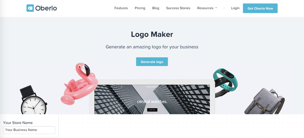 Oberlo на самом деле — это компания, занимающейся дропшиппингом, но они также предлагают несколько маркетинговых инструментов, таких как генератор названий фирм или калькулятор прибыли. У них также есть простой в использовании бесплатный конструктор логотипов.