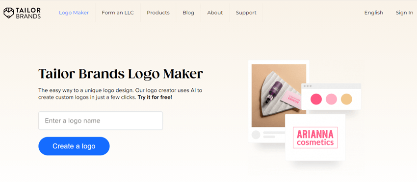 Это генератор логотипов, который использует искусственный интеллект. Он имеет большую базу готовых идей, которые вы можете использовать в качестве отправной точки. Имеется ряд инструментов для создания: выбор цветов, шрифтов, форм и шаблонов. Присутствует и отраслевой рубрикатор.