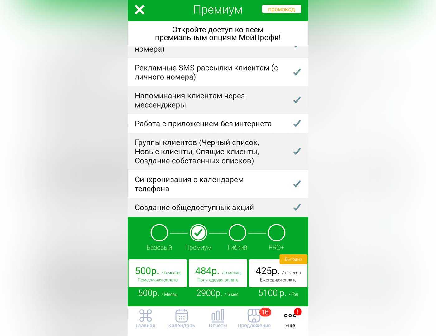 Есть ещё и обширный бесплатный функционал, которым можно пользоваться без ограничений. Это: ведение записи, сбор клиентской базы, онлайн-запись, отправка смс-напоминаний, настройка лояльности, доступ к данным с нескольких устройств.
