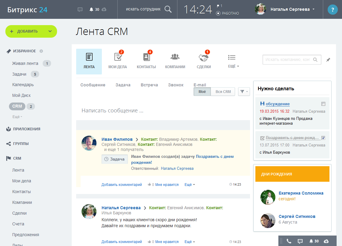 Еще один плюс этой СРМ – полная интеграция с продуктами 1С, так как и они, Bitrix 24 разрабатываются одной компанией.