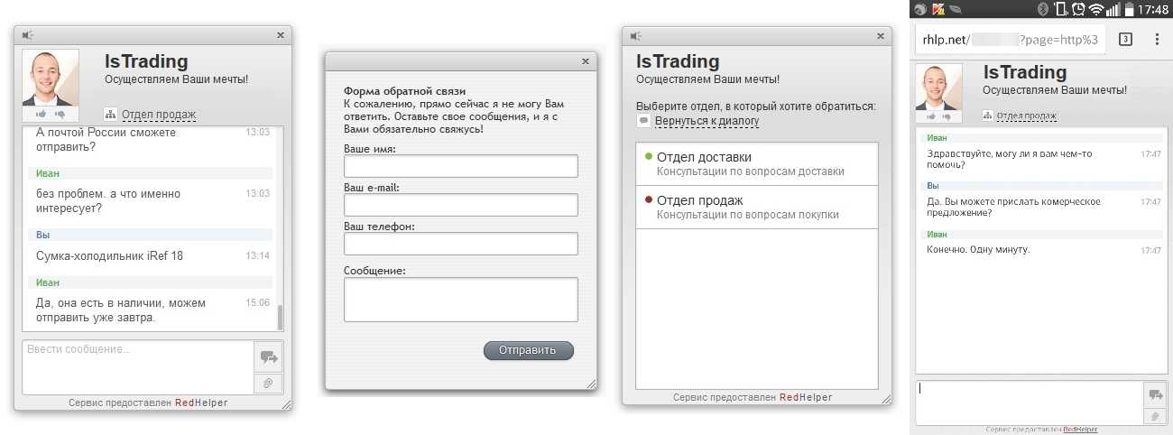 - Redhelper – популярный среди солидных ресурсов сервис, обладающий хорошим функционалом. В наличии практичная бесплатная версия онлайн консультанта. Основные минусы – отсутствие организации звонков и работа операторов только за компьютером.