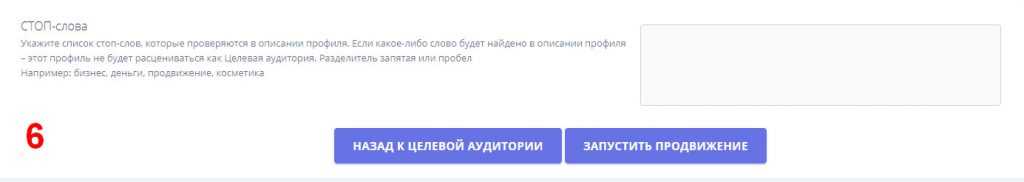 6. После настройки фильтров нажмите на кнопку внизу, чтобы запустить продвижение!