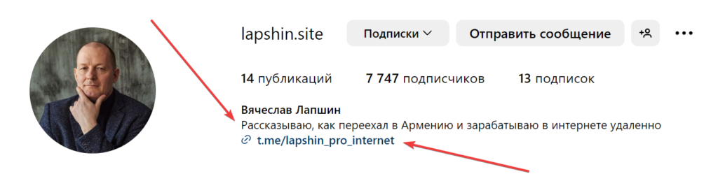 Указывать ссылки на сайт или переводить пользователей на свою страницу (в шапку профиля, на актуальное).