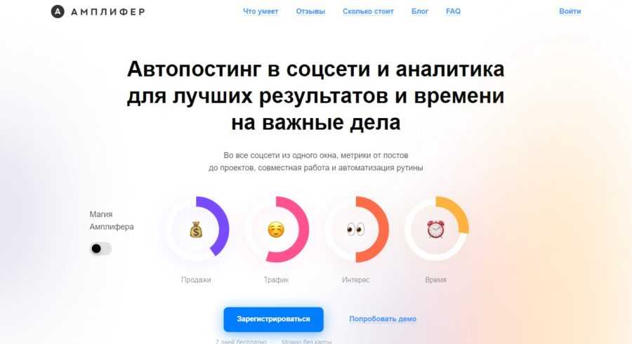 - Amplifr (выделяется широким функционалом, двухнедельным триальным периодом использования, поддержкой десятка социальных сетей).