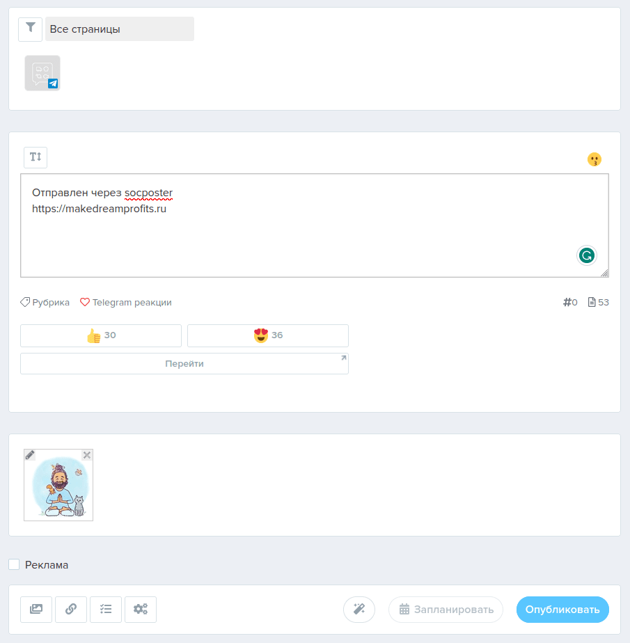 С другой стороны, большинство сервисов поддерживают работу со множеством других соцсетей и мессенджеров, что значительно упрощает работу, если у вас не только Телеграм-каналы.