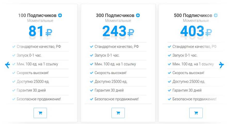 - пакеты подписчиков — от 950 рублей за 1 000;