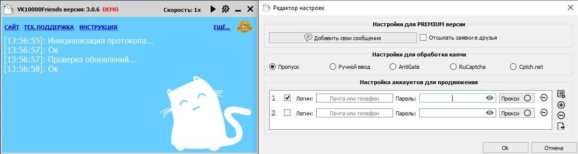 - Программа накручивает друзей, а не подписчиков. Поэтому при первом старте программа будет переводить подписчиков в список друзей. Во время этого скорость накрутки друзей будет снижена. Также программа будет отписываться от ваших подписок, поскольку они не дадут достичь максимального количества друзей.
