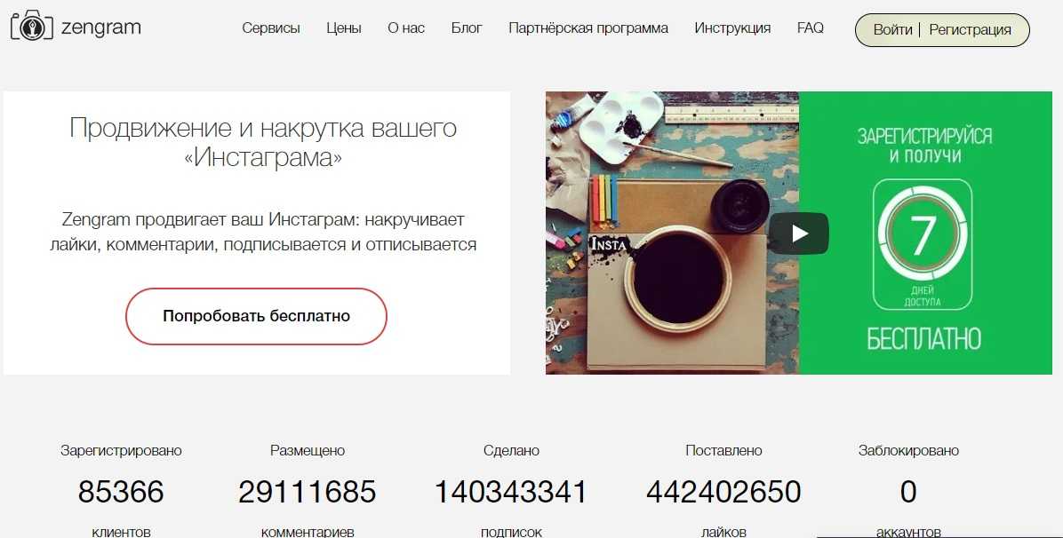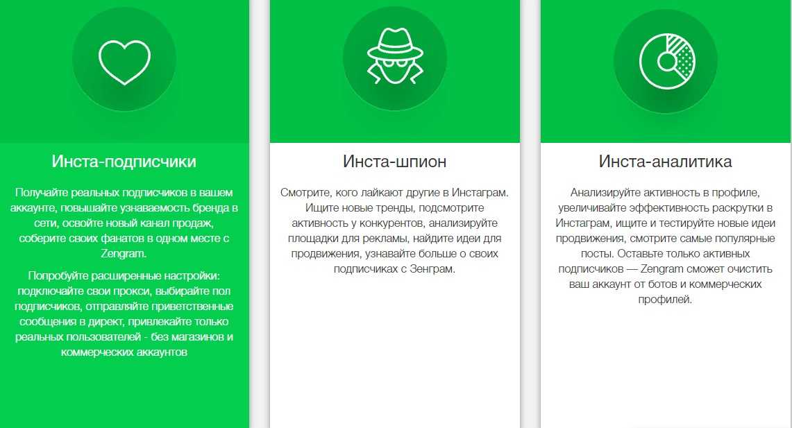 https://www.youtube.com/watch?v=SSt2jacANgY - Zengram. Сервис, как и Tooligram, привлекает именно живых подписчиков в Инстаграм. В отзывах люди упоминают это. Дешевле Instaplus. Помимо функций автоматического добавления лайков, подписок и комментариев есть блок аналитики и жутко любопытная функция шпионить за инстаграм-друзьями – посмотреть по логину, кому ставили и от кого получали лайки интересующие вас люди. Позитивная и общительная команда, молодцы!