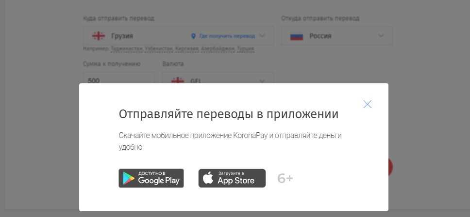 Но после нажатия кнопки «Далее» сайт предложит установить мобильное приложение, через которое можно оформить перевод. То есть, отправить деньги с сайта нельзя – нужно приложение: