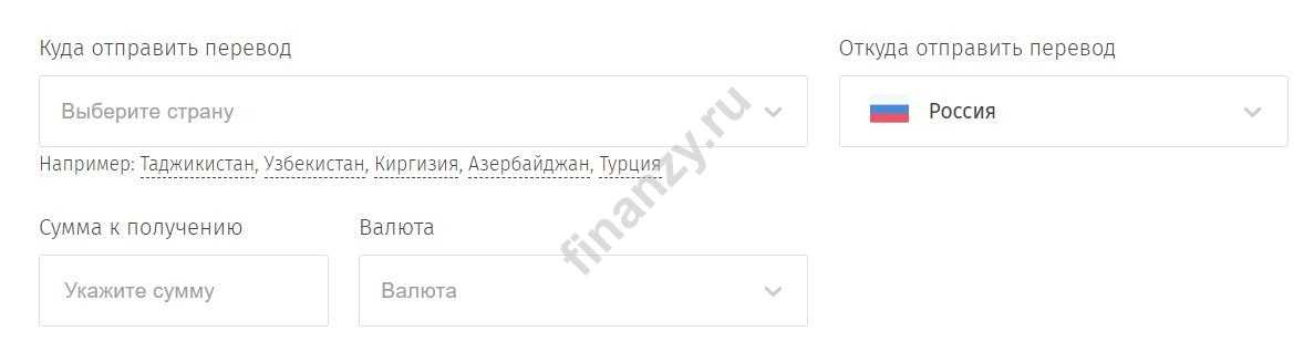 - Выбираете страну получения и валюту, указываете нужную сумму;