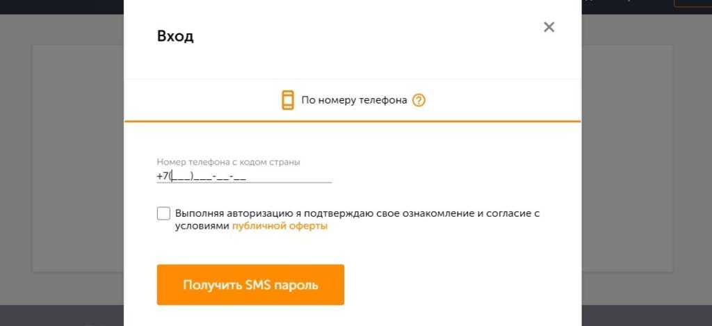 Система предложит авторизоваться. Нужно указать номер телефона, на который придет СМС с кодом доступа: