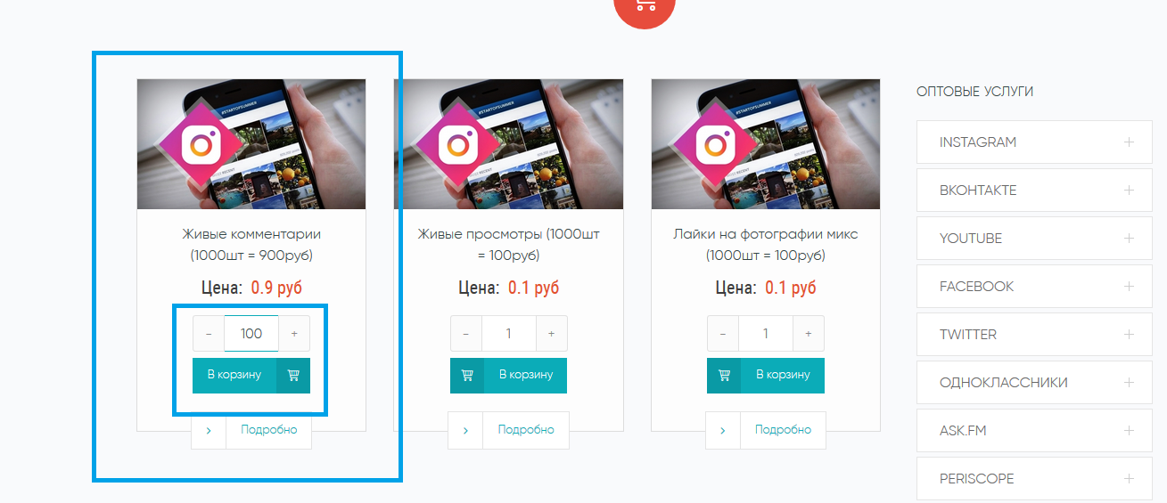 В корзине у Вас есть возможность ещё раз всё перепроверить: правильность выбранной услуги, количество заказанных единиц, качество ботов, скорость их накрутки и прочую информацию.