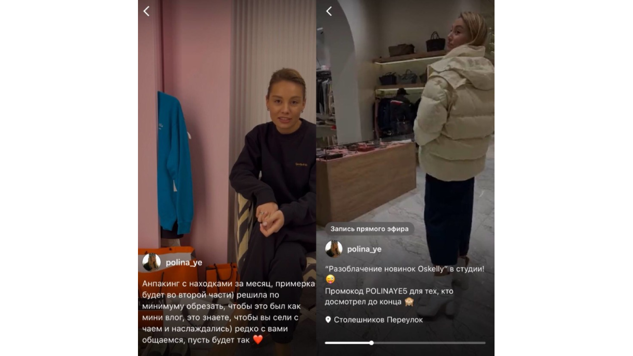 Сперва fashion-блогер зарабатывает имя и делает анпакинг собственных покупок, а после – вполне может рассчитывать на партнерские интеграции с брендами, которые ей по душе. Скриншот: инстаграм-аккаунт* polina_ye